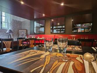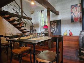 Cuisine de terroir dans un cadre verdoyant et chaleureux.