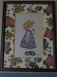 Cette dentelle représentant un rapace est en fils coupés d' après un dessin de Michel Jourde .