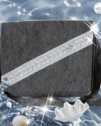 porte-monnaie mais aussi porte-carte en feutre décoré d'une dentelle blanche en lin .