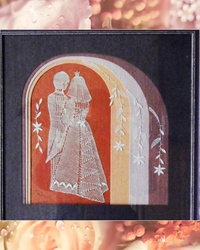 Cette fleur en dentelle Binche et son cadre ovale pourraient être offerts pour la fête des Mères .