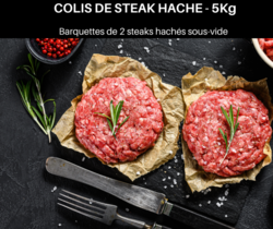Colis de 5kg de viande de b½uf. Morceaux conditionnés en sachets individuels sous-vide.