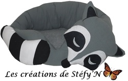 Cette petite niche en forme de raton laveur permettra à votre loulou de s'y cacher pour s'amuser mais aussi de s'y blottir pour ses longues sieste. Cette cabane tient debout grâce à ses parois renforcées par de la ouatine et peut être posée par terre ou accrochée dans la cage par ses passants (lien/crochet non fourni). L'entrée ventrale mesure 12 cm de diamètre.