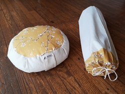 Coussin demi-lune artisanal tissu coton fleurs de cerisier - Méditemps
