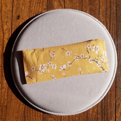 Coussin demi-lune artisanal tissu coton ocre fleurs cerisier - Méditemps