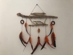 Porte-photos en bois flotté , entièrement réalisé à la main Matière : bois flotté et plumes l:24 cm H: 32 cm